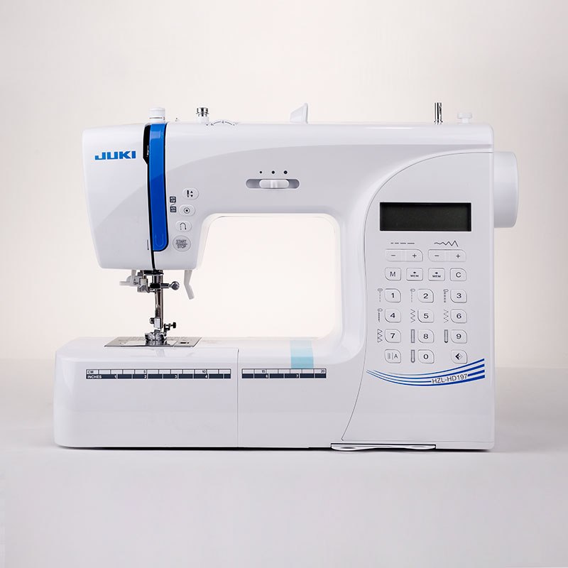 MACCHINA PER CUCIRE ELETTRONICA 197 punti, alfabeto, display illuminato, zig zag fino a 7 mm, lunghezza punto fino a 4,5 mm, 7 asole in automatico, memoria da 30 punti, punti a specchio, infila ago, affrancatura automatica, luce fredda a LED, braccio libero. Valigia rigida per il trasporto. Velocità 800 p/mCrochet rotativo
